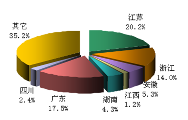 中(zhong)國圓錐滾(gun)子軸承的(de)發展非常(chang)迅速,截止(zhi)2012年,我(wo)國圓錐滾(gun)子軸承企(qi)業的區域(yu)分布主要(yao)如下: