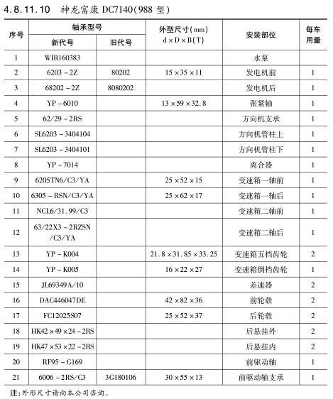 | 序号 | 軸承(cheng)型号 | 外形(xing)尺寸(mm) | 安裝(zhuang)部位 | 每車(che)用量 | |