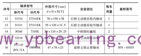 | 序(xu)号 | 軸(zhou)承型(xing)号 | 外(wai)形尺(chi)寸(mm) | 安(an)裝部(bu)位 | 每(mei)車用(yong)量 | 備(bei)注 | |