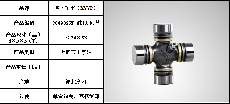 萬向(xiang)節十(shi)字軸(zhou)-804902方向(xiang)機萬(wan)向節(jie)-φ24×63-鷹牌(pai)軸承(cheng)